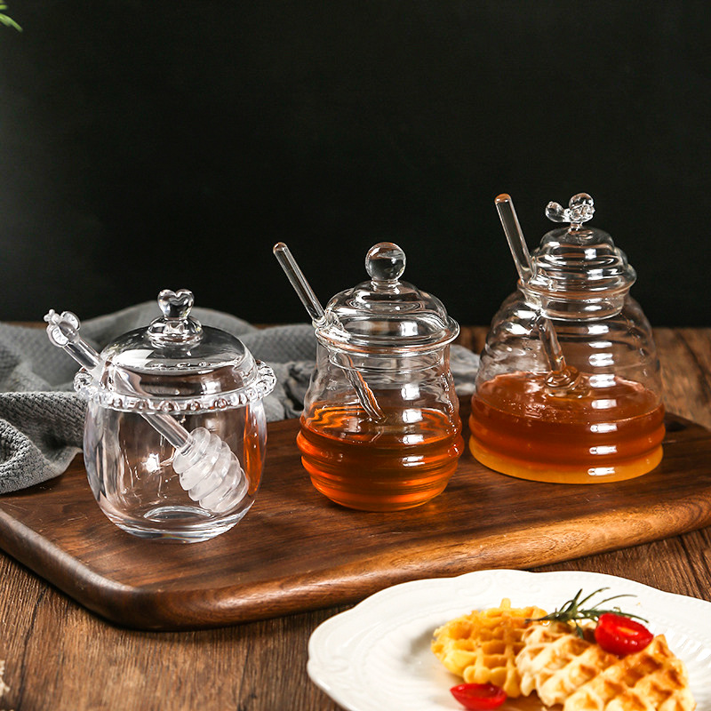 ヨーロッパ式シンプル透明蜂蜜缶高ホウ素シリコン砂糖缶ガラス瓶ジャム瓶攪拌棒蓋付き収納缶