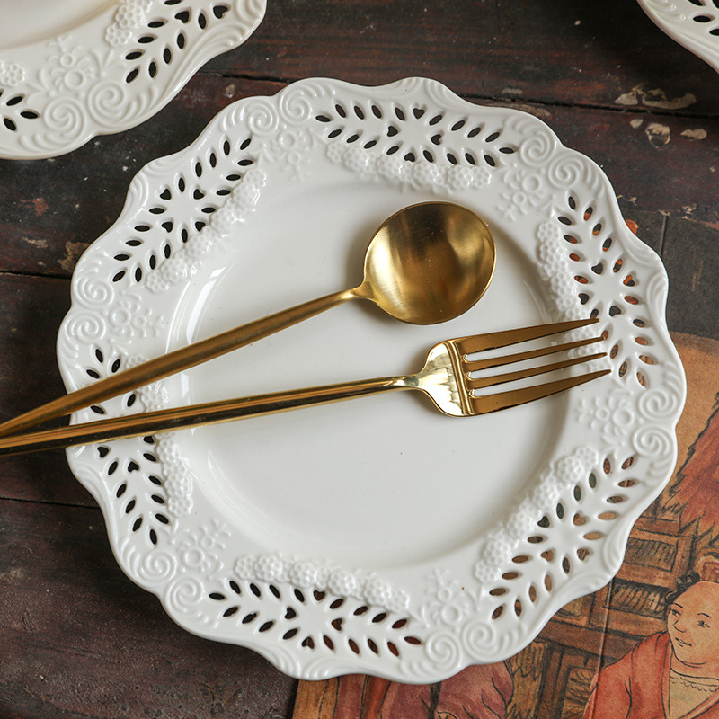 フランスの透かし彫りの浮き彫りの皿の下でお茶の食器のデザートの皿の洋菓子の皿の洋菓子の皿の果物の皿の家庭用の皿
