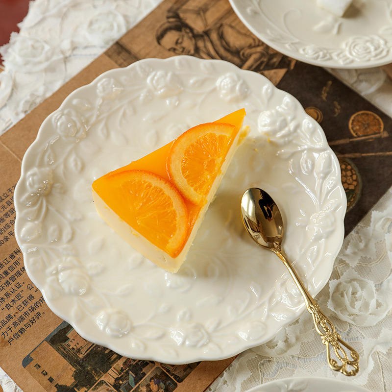 フランスのロマンチックなクリーム色のバラの陶磁器の浮き彫りの皿のお菓子の皿の午後のお茶の皿の洋菓子の皿の果物の皿の家庭用の皿