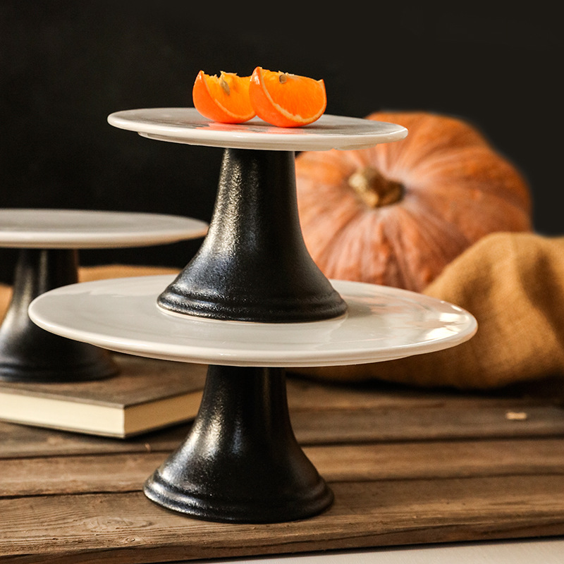 日本式高足皿陶磁器茶点皿家庭用デザートスナック果物皿創意シンプル果物スナックお菓子トレー