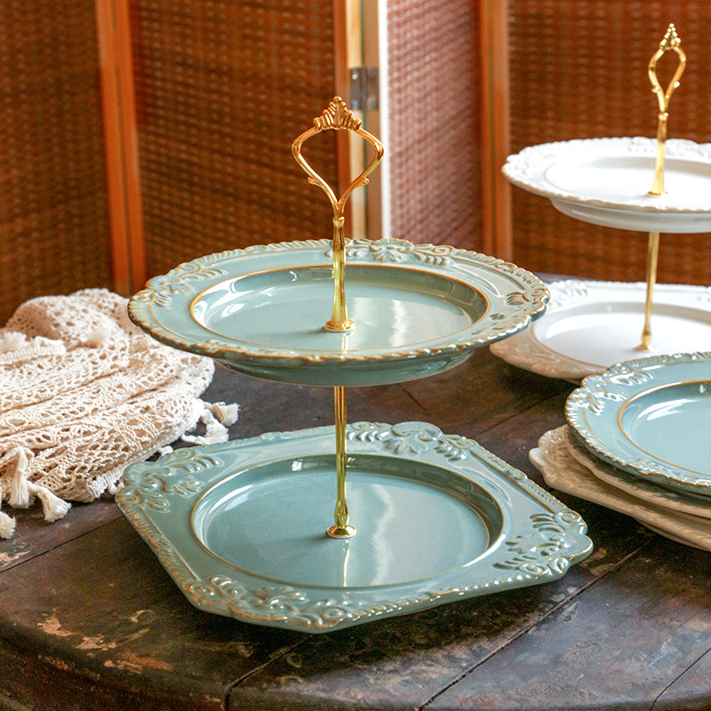 フランスの創意多層果物皿ネット赤軽豪華風家庭用リビングルームのお茶のお菓子の棚