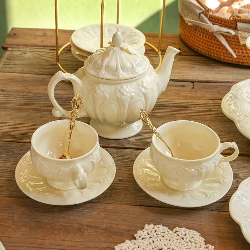 フランスレトロヨーロッパ風陶磁器描金宮廷コーヒーカップ皿イギリス式アフタヌーンティー紅茶カップ花茶カップティーポット