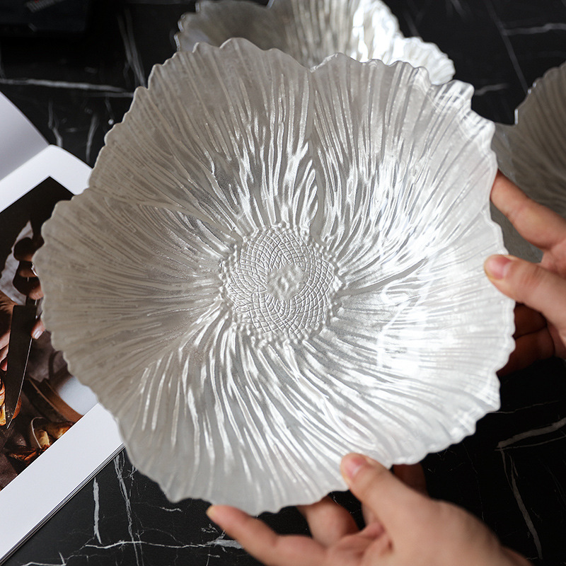 北欧の現代の花の形の家庭用の果物の皿の水晶のガラスのお菓子の皿の美しい珠の光の簡単な皿