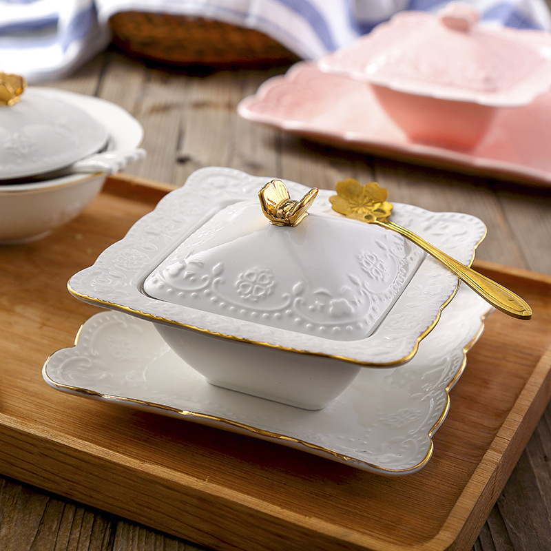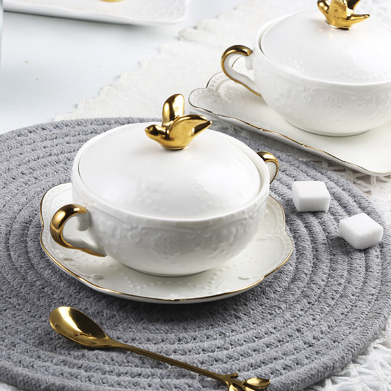 ヨーロッパ式のツバメの巣の碗の双耳は蓋のデザートの碗の杯を持って水をあけて杯の銀の耳のあめの水のスープの碗の陶磁器の食器を煮込んで卵の碗を蒸します