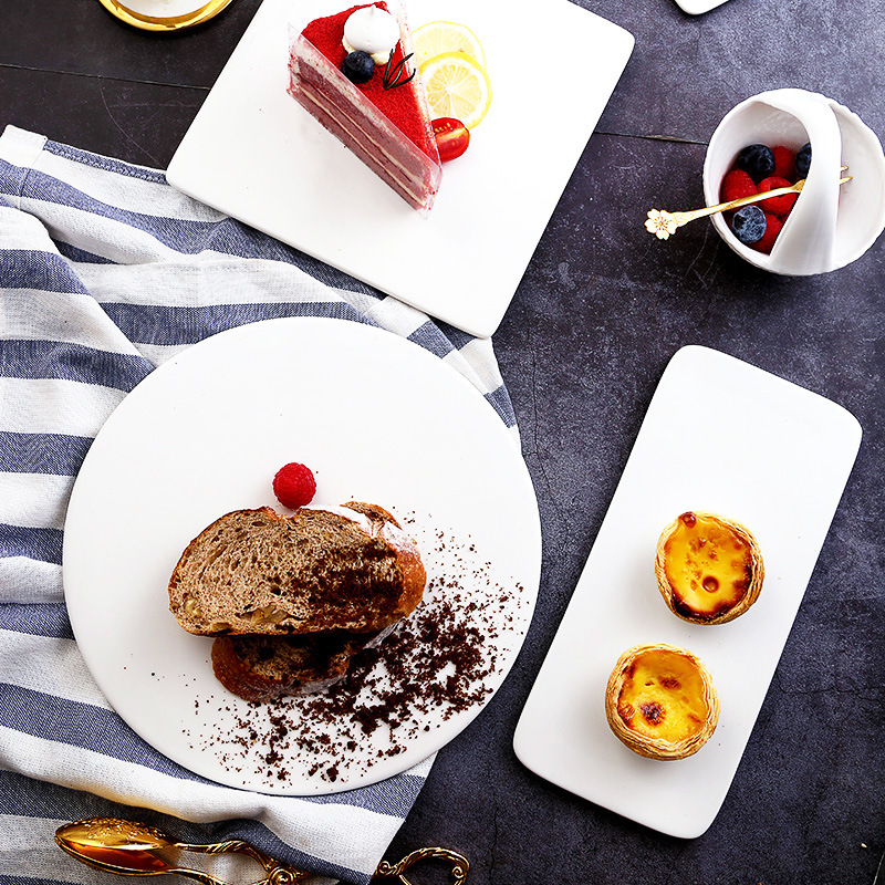 日本式陶磁器洋食皿長方形平板焙煎食器純白皿ケーキ平皿レストラン皿寿司皿