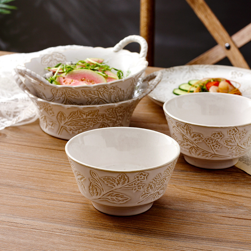 アメリカ式レリーフ皿レトロ料理皿洋食皿スープ碗創意双耳碗円盤サラダ皿陶磁器食器