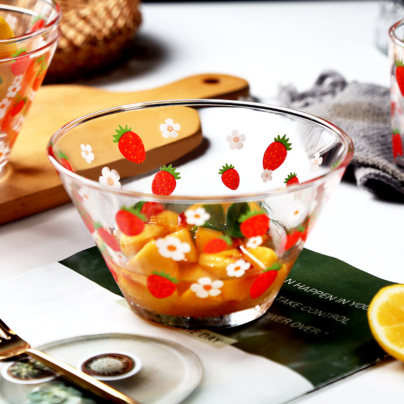 家庭用日本式ガラスサラダ碗創意小清新透明果物碗大サイズデザート碗学生寮麺碗