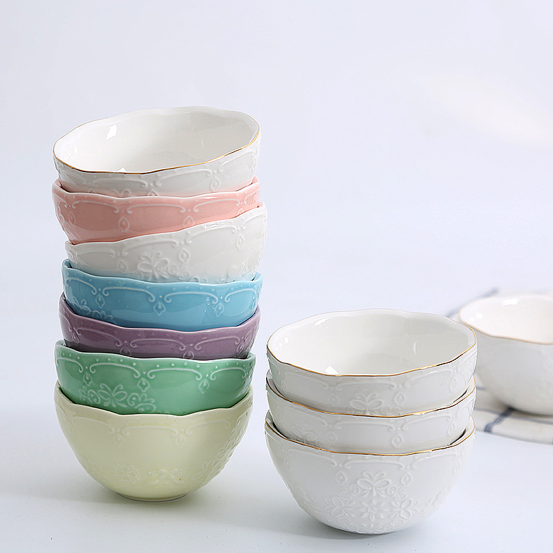 ヨーロッパ式の蝶のレースのレリーフの陶磁器の碗の家庭用の茶碗のご飯の碗の朝食の碗の陶磁器の碗の食器のセット