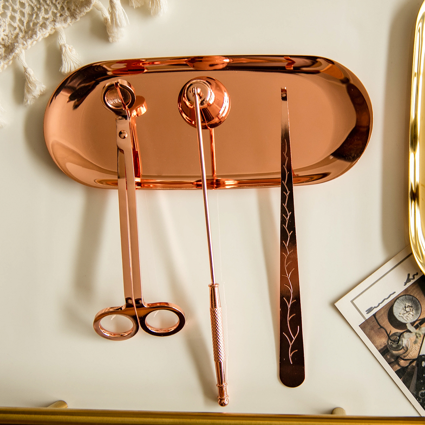 アロマキャンドルツール4点セット ジュエリートレイ キャンドル芯カッター キャンドル消し器 キャンドル消しカバー フック 在庫あり