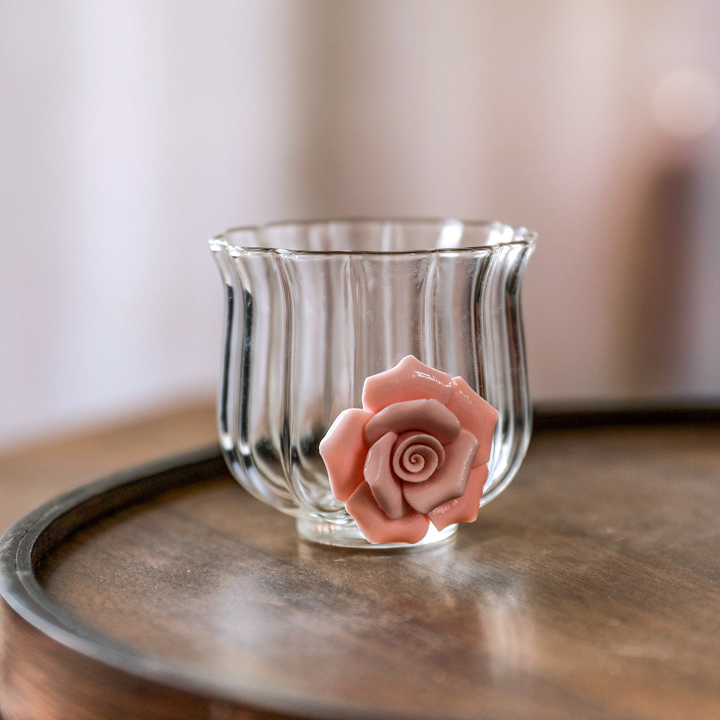 ヨーロピアンスタイルのガラスマスターカップ、カンフーティーカップ、花びら、高価値のドリンクティーカップ、透明なティーセット、香りのシングルカップ