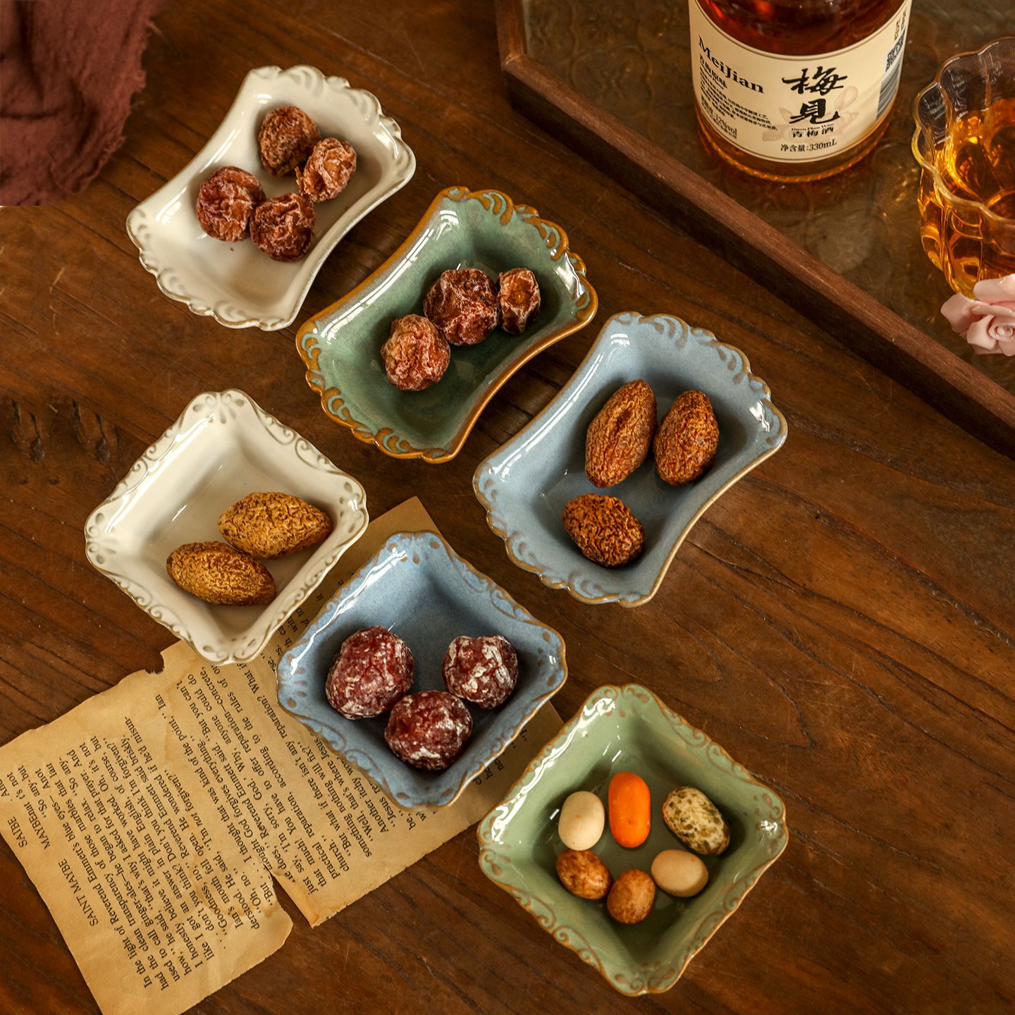 レトロエンボス皿、角型ドライフルーツ皿、バーベキューソース皿、家庭用小皿、おかず盛り合わせセット、スナック皿
