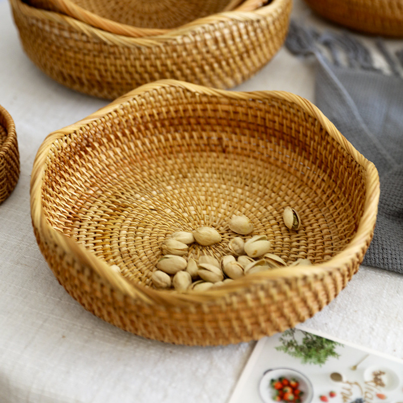 日本式籐編み収納バスケット家庭用リビングフルーツバスケットパンバスケットお菓子スナックバスケット円形大トレー