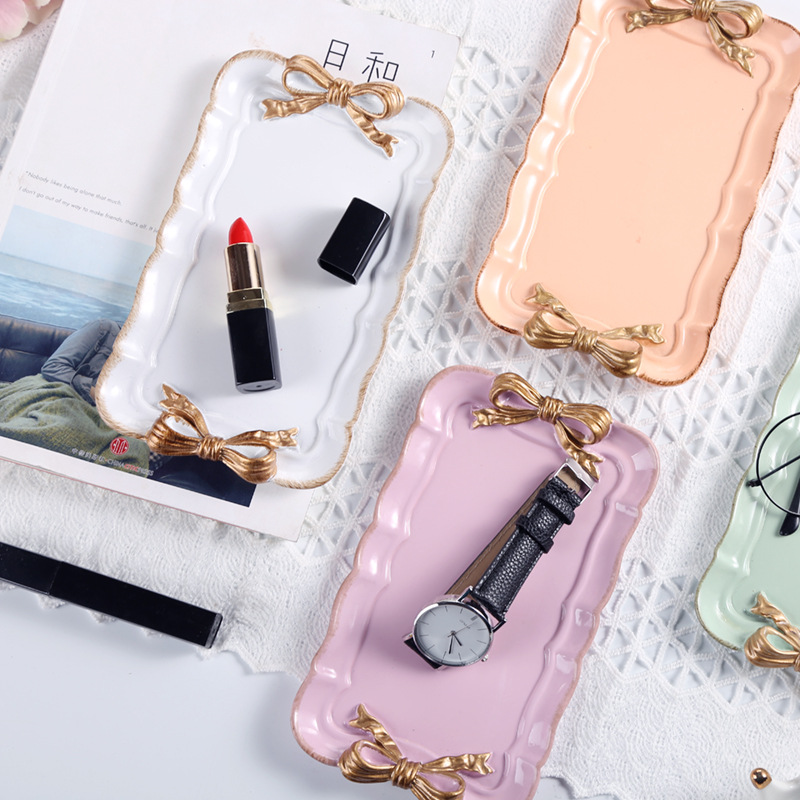 ヨーロッパ式の蝶結びの長方形の小さいトレーの果物の皿の午後のお茶の皿は装飾の皿のケーキの皿のデザートの皿を収納します。
