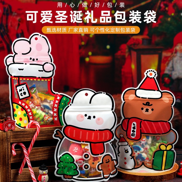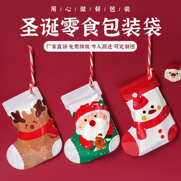 スポット卸売りクリスマス靴下プレゼント袋子供キャンディービスケット包装自封袋クリエイティブ祝日ギフト袋