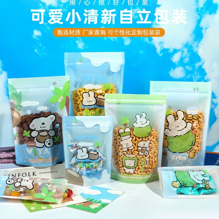 かわいい漫画のキャンディーの間食袋の小さい清新な自封袋の透明な雪の花のショートニングの食品の密封の包装袋