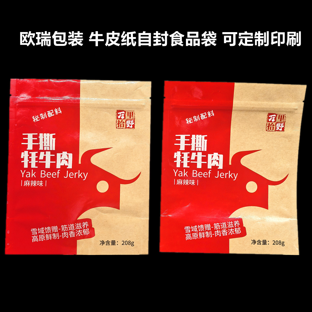 光沢のあるクラフト紙ビーフジャーキー自己密封食品包装袋ウィンドウ紙プラスチックジッパーバッグ紙プラスチックウィンドウバッグ