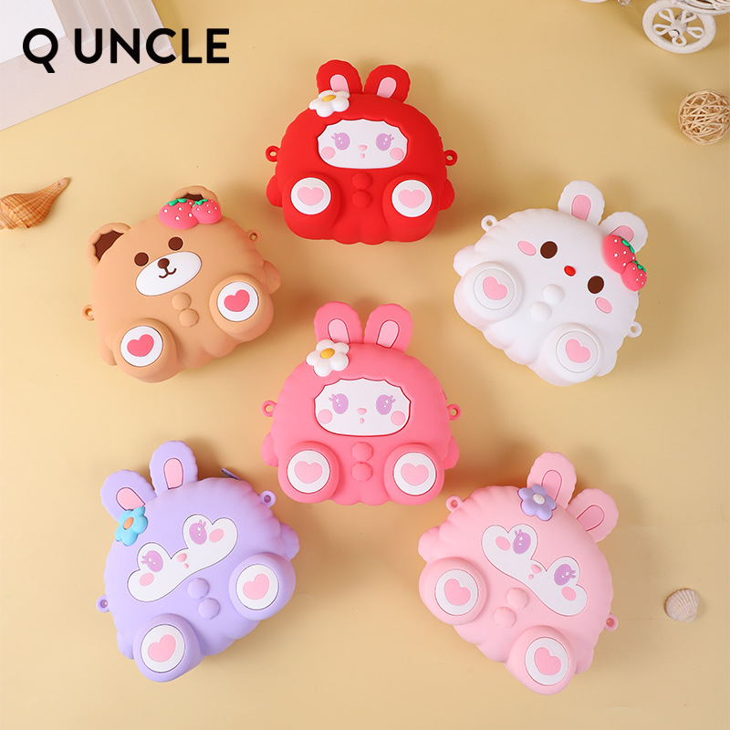 Q uncle子供漫画ミニシリコンバッグ萌え趣味うさぎ小銭入れいちごベアイヤホン収納バッグ