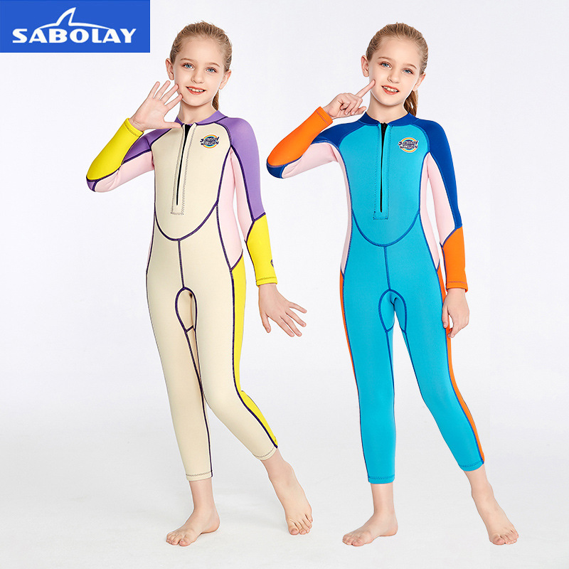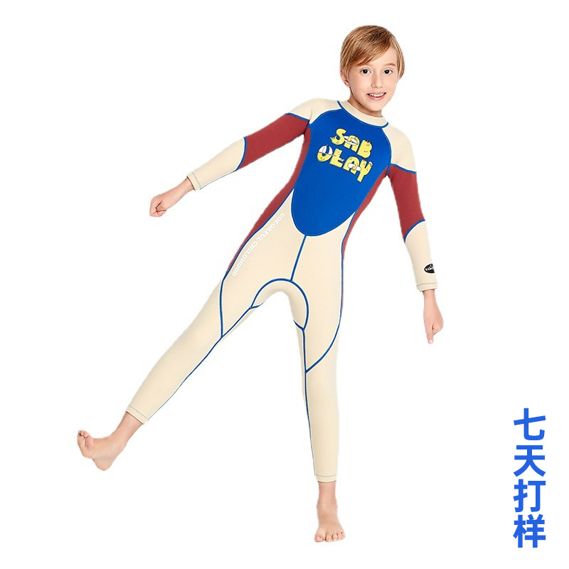 SABOLAY新品儿童潜水服2MM防寒保暖儿童泳衣连体抗压浮潜冲浪服