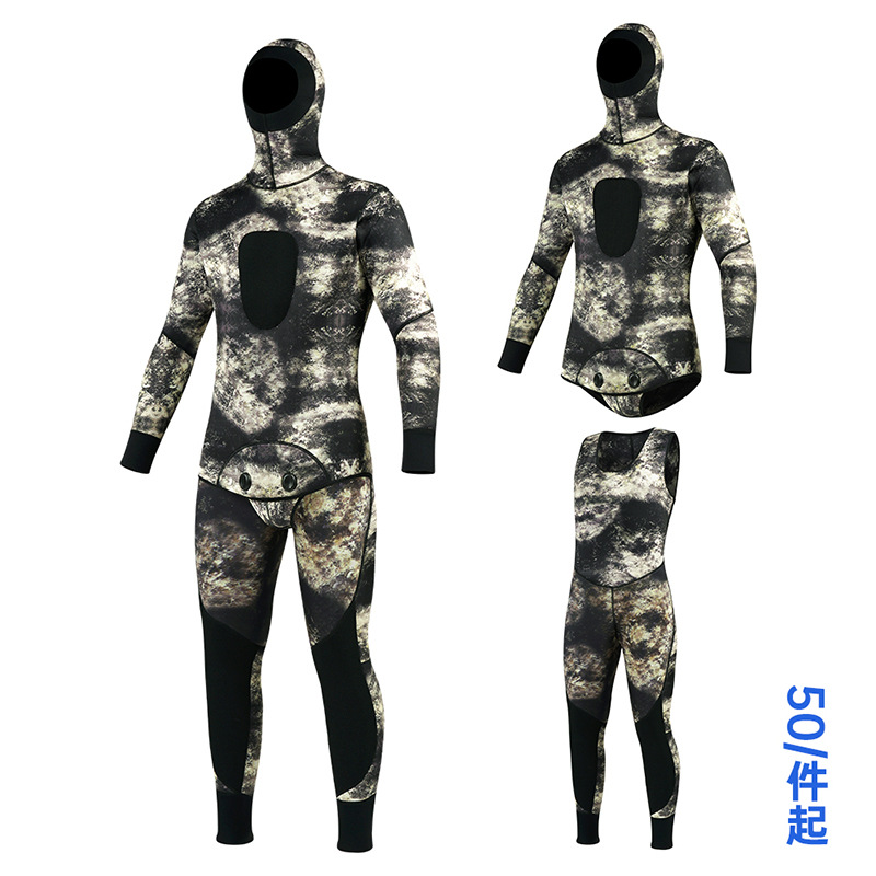 欧米のブラインドスリット分体潜水服カップル保温狩猟魚服迷彩潜水服は1.5-7mmカスタマイズできます。