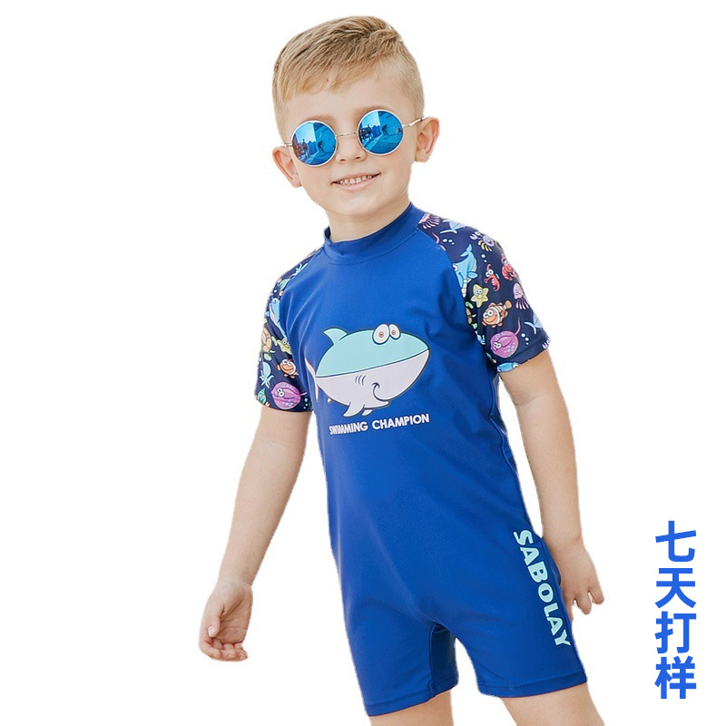 サメ宝莱の新型プリントの子供の水着の中で大きい子供の男の速乾の潜水服の温泉の水着のメーカーは注文して注文します。