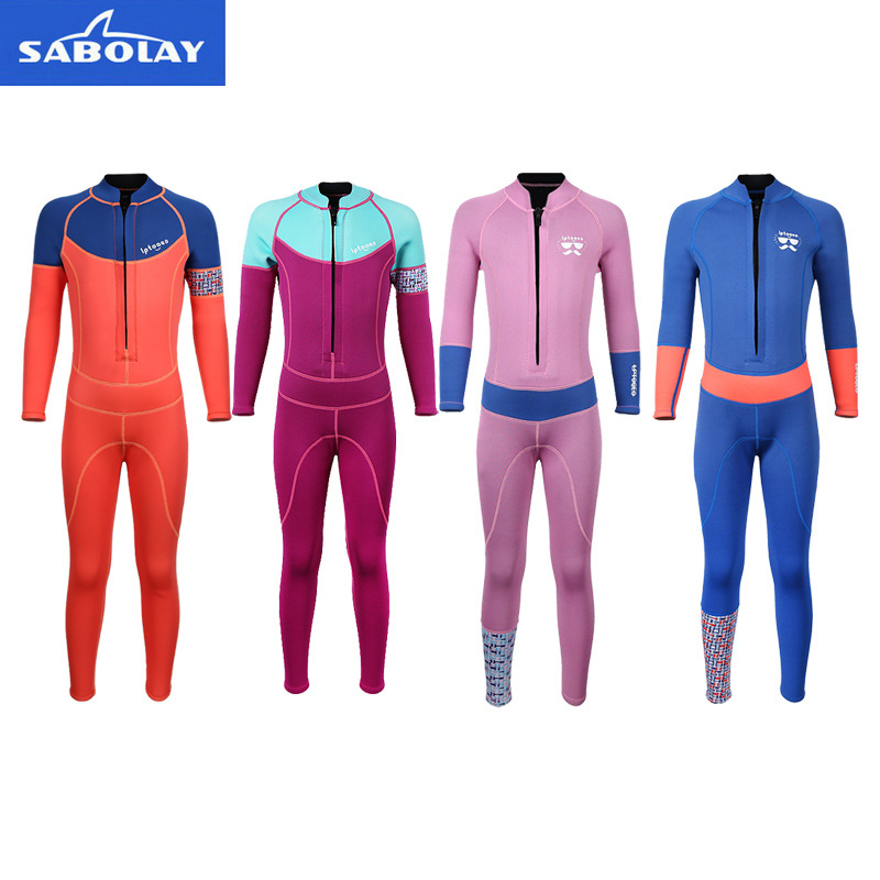 Sabolay子供ウェットスーツ2mmワンピース男女児童長袖ウェットスーツ保温耐寒サーフィン服水着