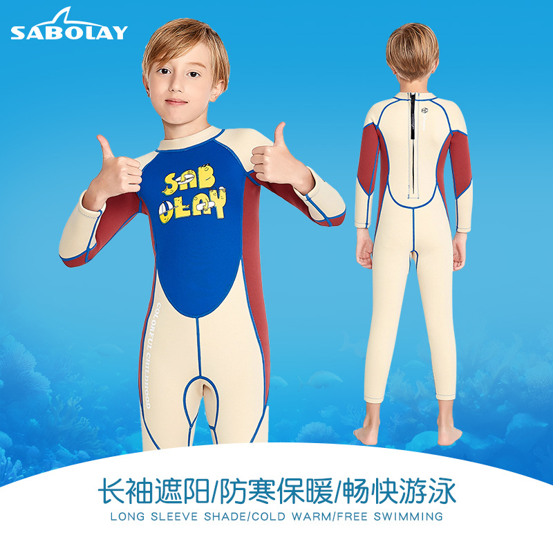新品厚手2mm子供水着ワンピース長袖保温水着男浮潜日焼け止めサーフィンウェットスーツ