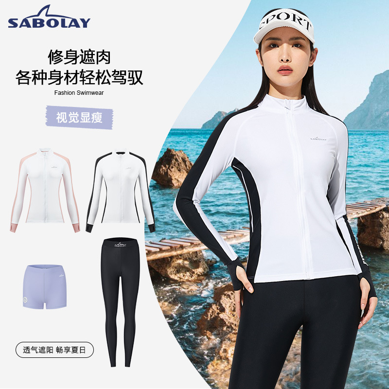 速干スプリット水着レディース保守シュノーケル长袖水着スラブスポーツ日焼け止めウェットスーツサーフィン服