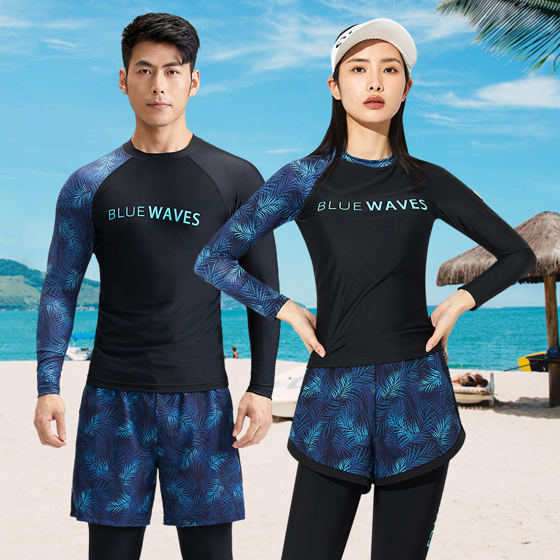 男女分体水着長袖日焼け止め温泉休暇カップルセット保守速乾防水母サーフィン服