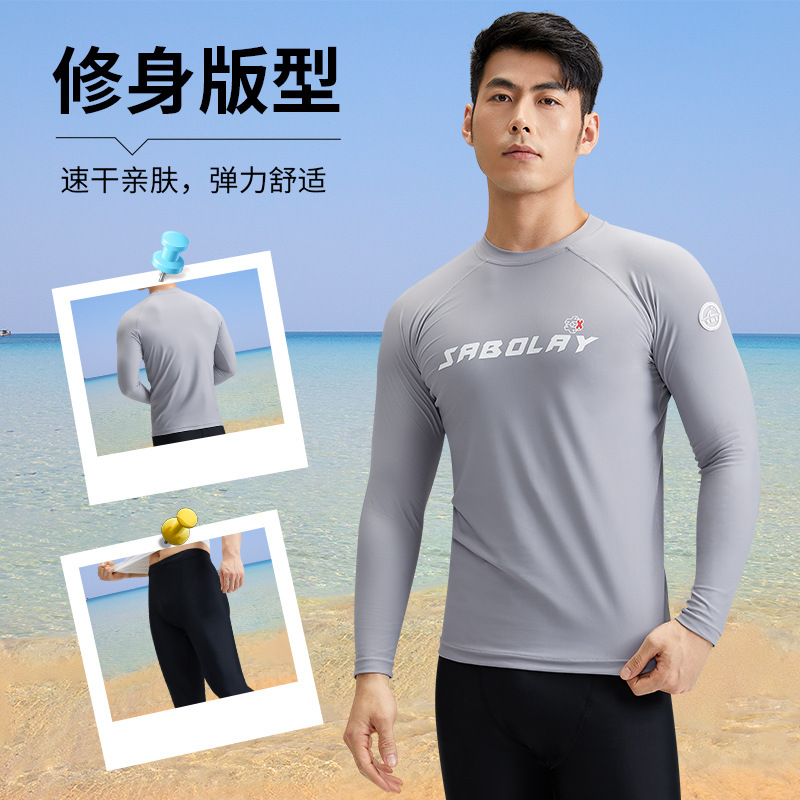 SABOLAY新型男性夏海辺日焼け止め水着水着セットナイロン通気性専門分体水着