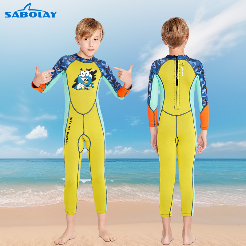 サメ宝莱児童2mm厚さ潜水服ワンピース長袖色合わせアニメプリント耐寒保温クラゲ服