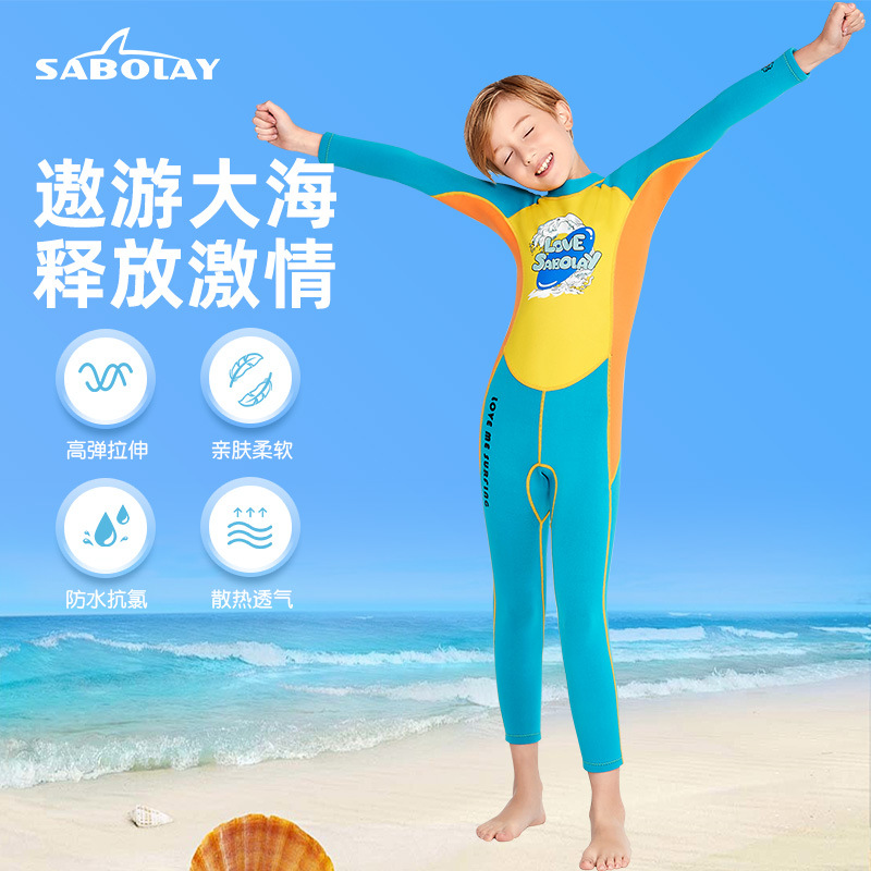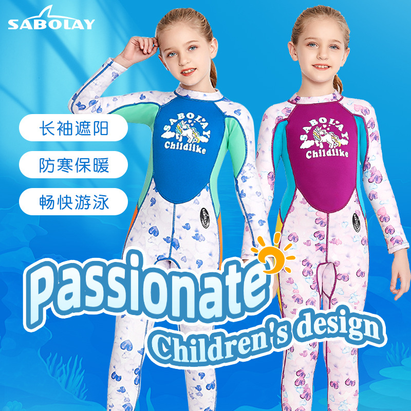 国境を越えた新型男女児童水着長袖日焼け止め連体保温水着長型厚手児童潜水服