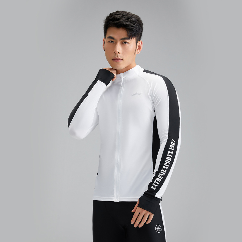 2023年新品夏日焼け止めupf50 + メンズカーディガンスプリット水着速乾性ナイロン水泳サーフィンウェア