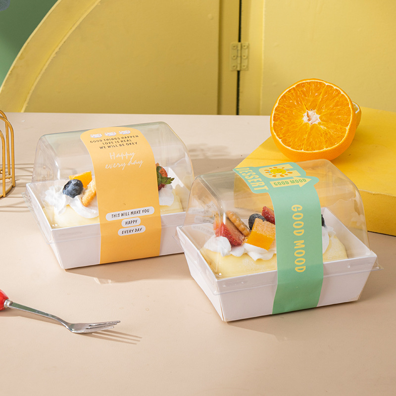 ケーキ巻き包装箱ムースケーキタオル巻き天地蓋紙プラスチック箱サンドイッチ西点透明包装箱