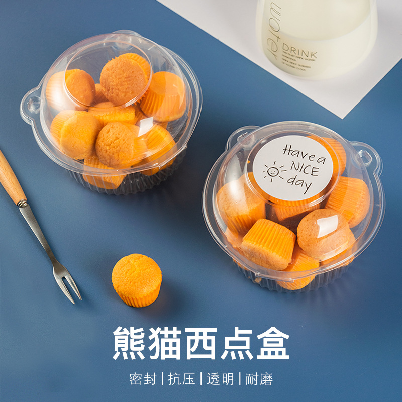 パンダの頭の小さいケーキの包装箱の透明な丸いクッキーの包装箱の焙煎シュークリームの西の点のプラスチックの箱