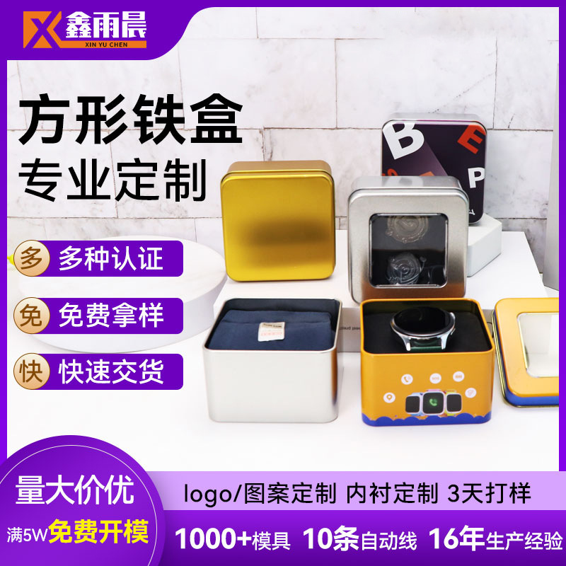 シンプルな純色の四角形のアクセサリーのプレゼントの腕時計の鉄の箱は正方形のブリキの箱を包装します。