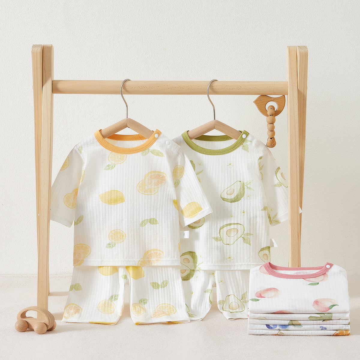 ベビー服、夏用薄手タイプA純綿ボンレススプリットセット、長袖ズボン、パジャマ、空調服、ベビー服