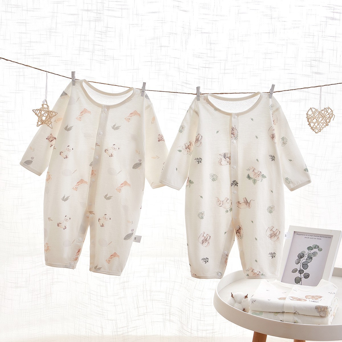 ベビージャンプスーツ、夏用薄手長袖ローブ、A級骨なししわ綿長袖パジャマ、空調服、ベビー服