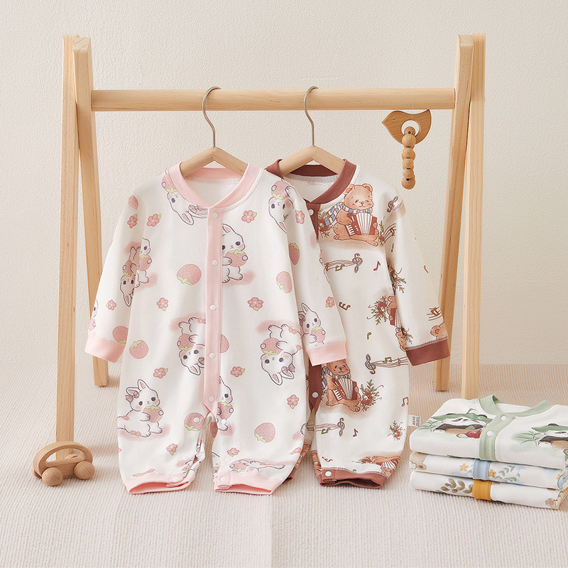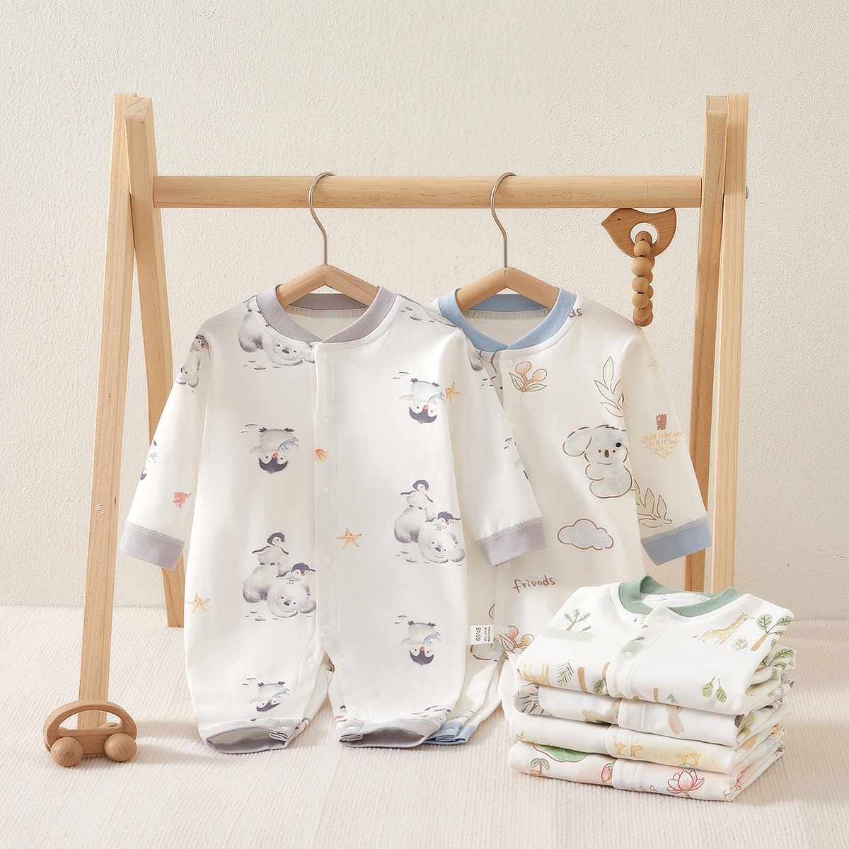 赤ちゃんの服赤ちゃんの下着のハーフバックの服春と秋の骨なし赤ちゃんのパジャマ満月の純綿の上着の新生児の服