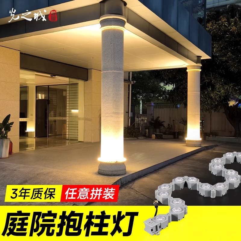 Ledフープランプ点灯防水リング照明柱スポットライト屋外装飾円形ビーム七彩抱柱ランプ