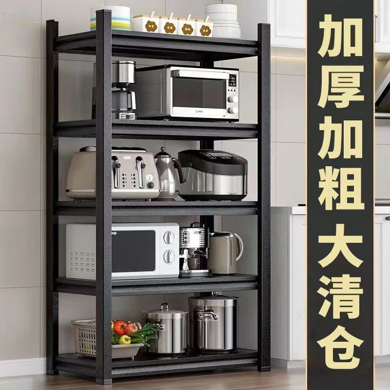 厚みのある倉庫棚、スーパーマーケットの棚、全体の柱、床置き棚、調整可能な多層家庭用収納キッチンラック