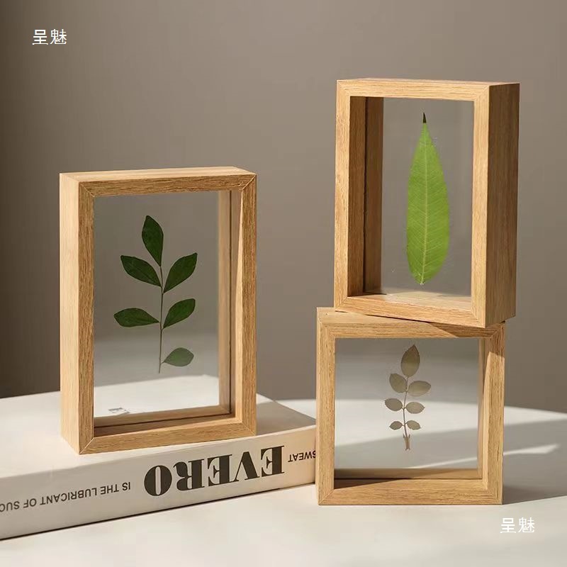 両面透明ガラス書道切り絵ポストカード署名フォトフレーム葉ドライフラワー標本植物フォトフレームテーブル