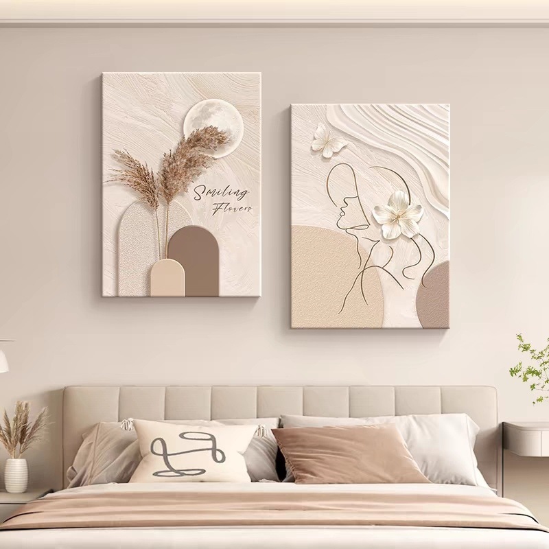 モダンなミニマリスト装飾絵画クリームスタイルログスタイル暖かい北欧ソファリビングルーム吊り絵画抽象キャラクター吊り絵画