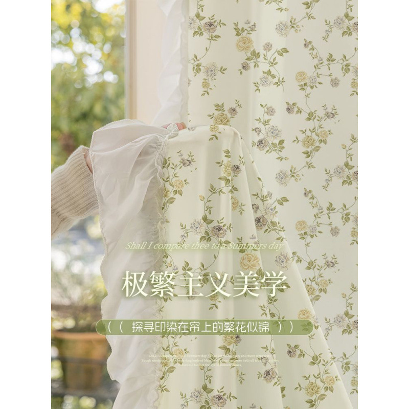 フレンチレトロな田園花柄二層レースカーテン遮光新しいパンチフリーインストール布寝室ガーゼカーテン