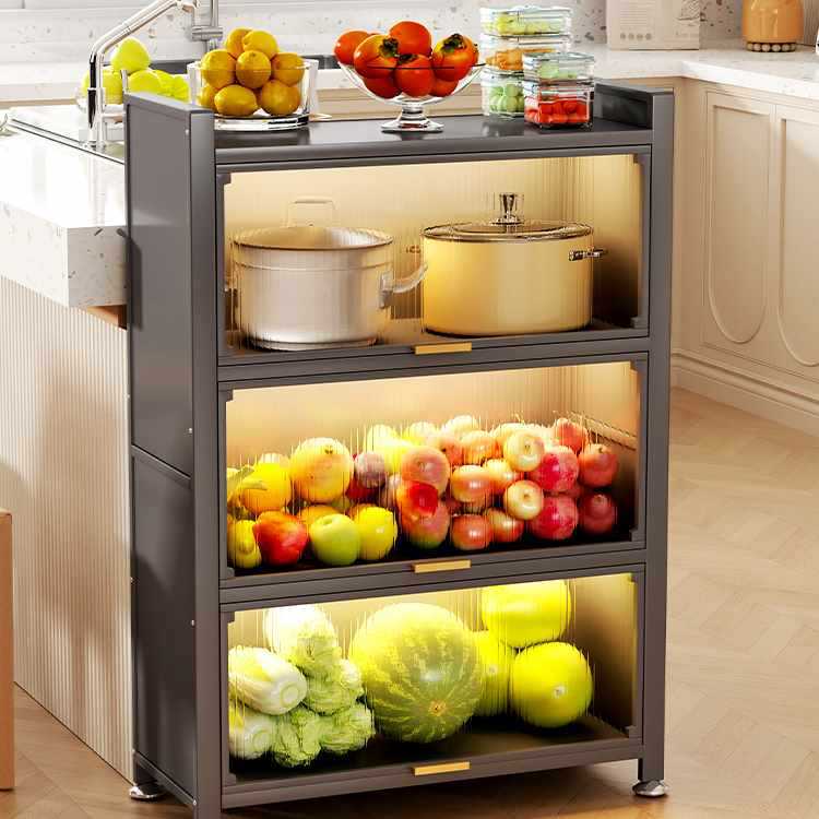 キッチンラック床置き多層家庭用収納キャビネット防塵多機能電子レンジ食器収納キャビネット