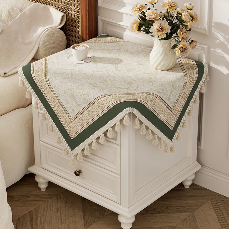 アメリカンスタイルの寝室のベッドサイドテーブルカバー、小さな正方形の布巾、防塵カバー、電子レンジの上部の防塵布、小さな正方形のテーブルクロス