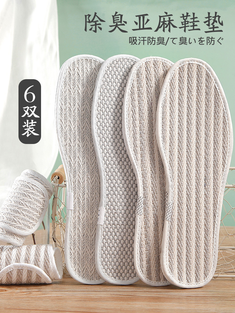 リネンインソール、通気性、吸汗性、消臭性、男女兼用ソフトソールヨモギ消臭・香り付き革靴、手作りの快適な純綿