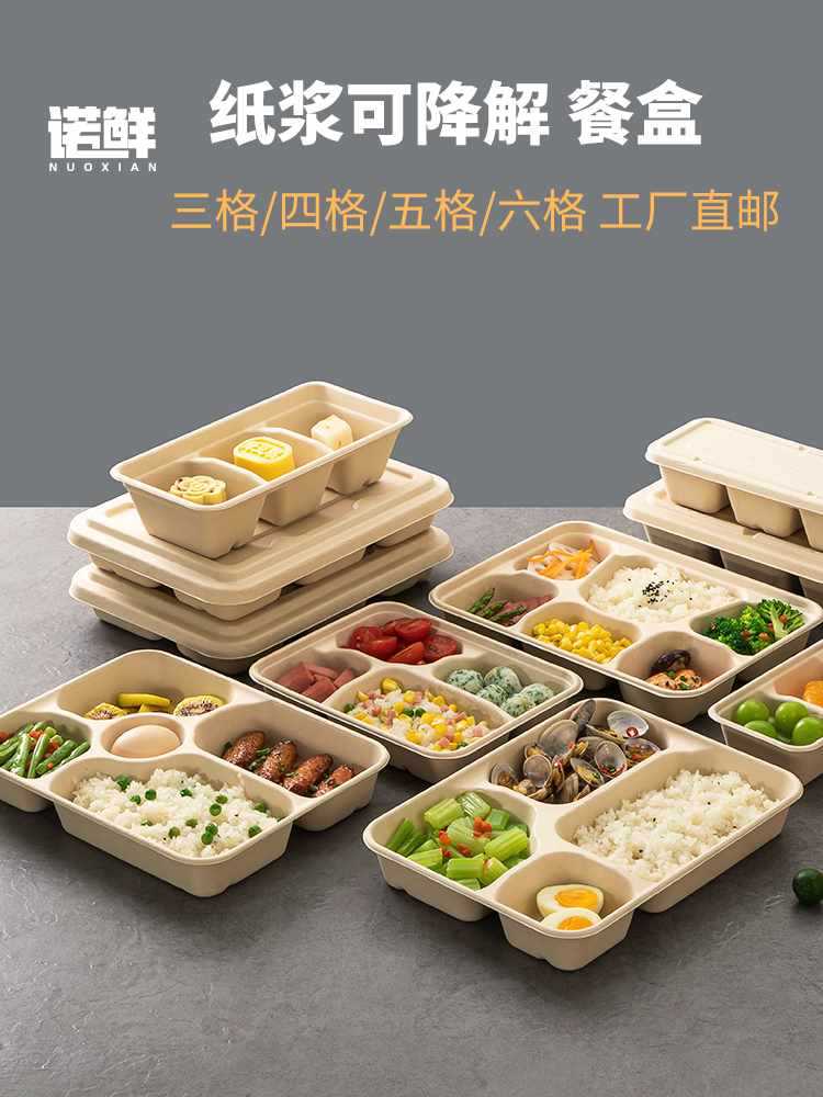 ≌≌使い捨て4コンパートメント弁当箱、3コンパートメント、4コンパートメント、5コンパートメント、6コンパートメント、テイクアウト包装、生分解性パルプトレイ食事