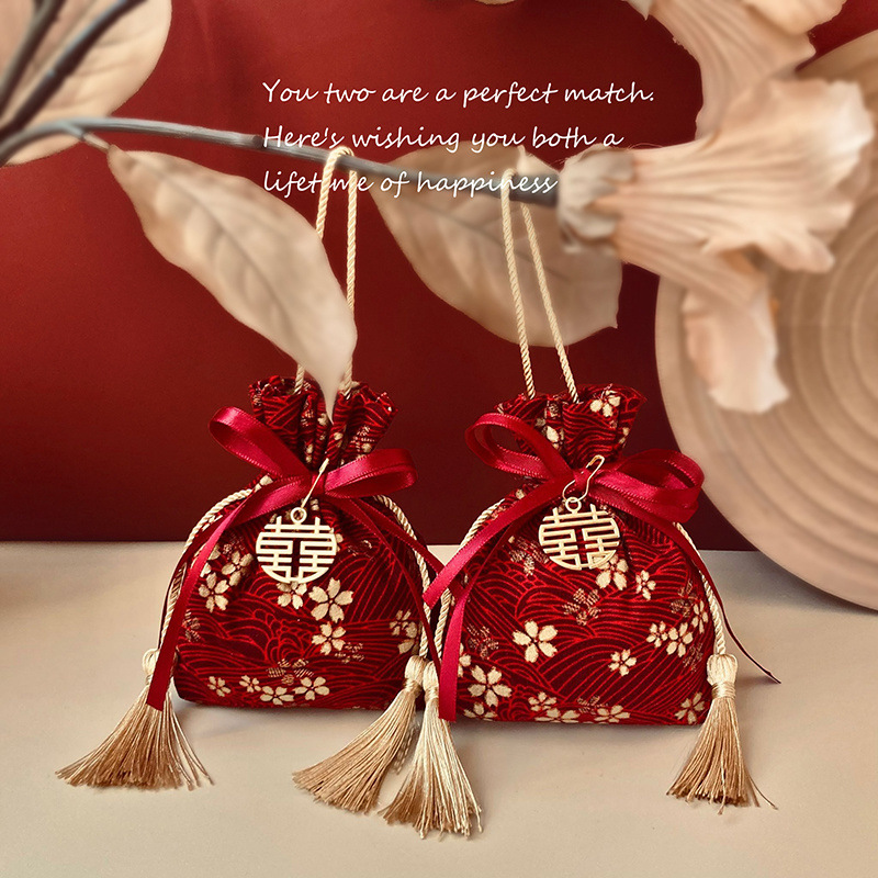 ウェディングキャンディボックス、ウェディングキャンディバッグ、空箱、ウェディングポータブルキャンディボックス、中国風の折りたたみ式ギフトボックス、布バッグ