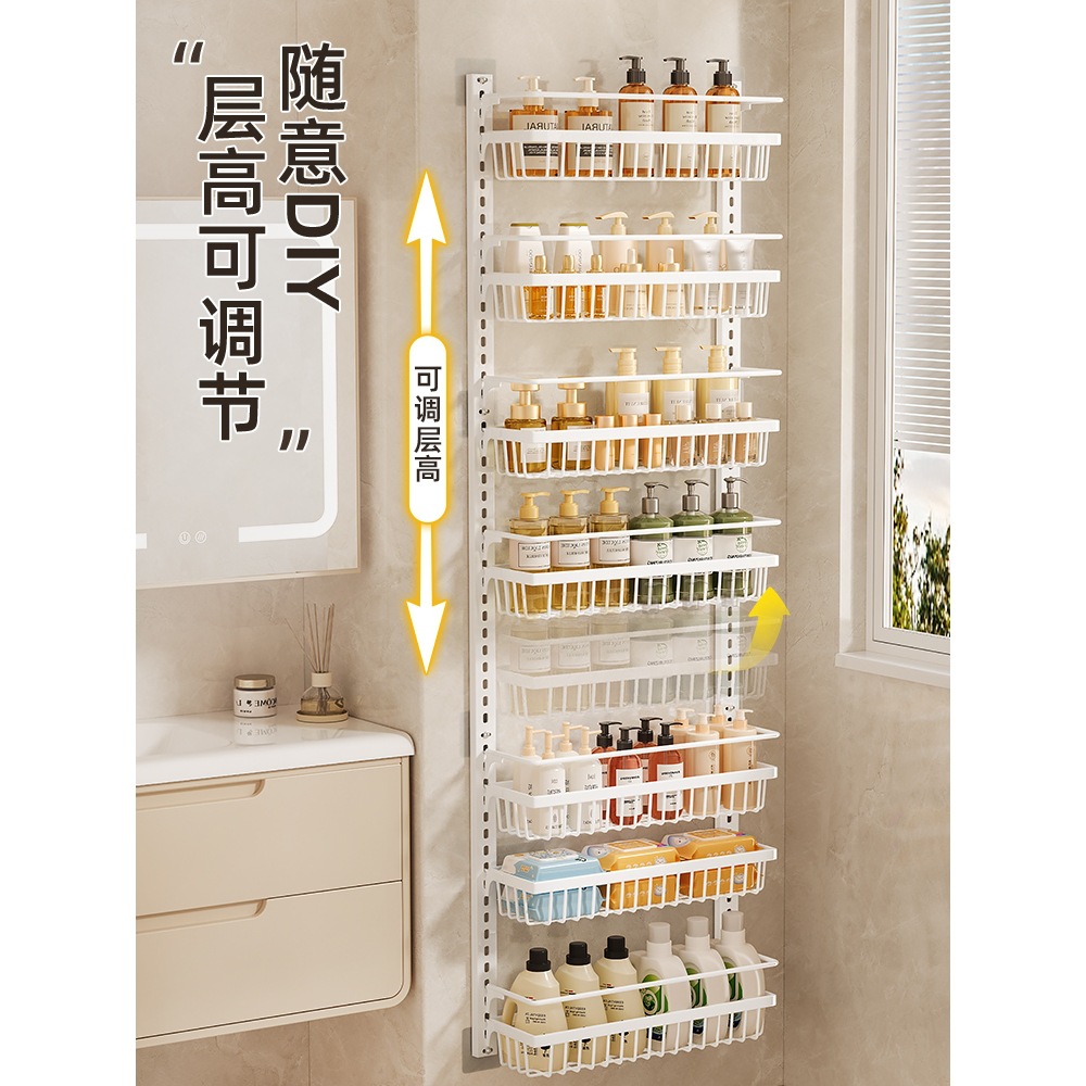 パンチフリーのバスルームトイレドア後部収納ラック狭い隙間壁掛け多層壁収納棚トイレキャビネットの横