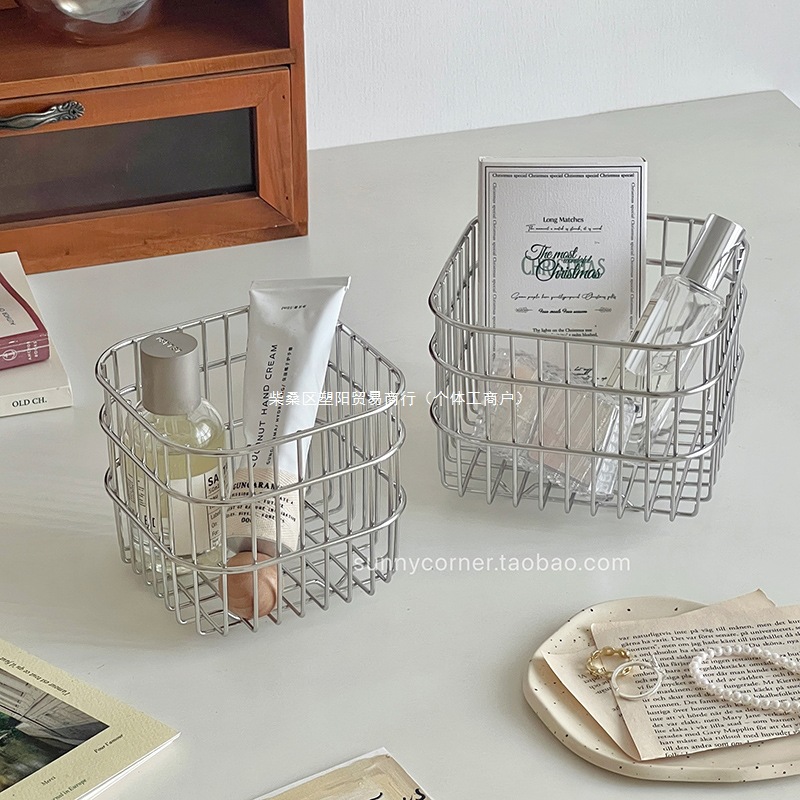 デスクトップステンレス鋼収納バスケット雑貨バスケット収納バスケットイン収納ボックスホームオーガナイザースクエア化粧品
